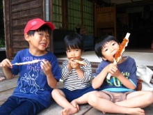 お姉ちゃんたちの小学校の学芸会に、お気に入りの下山の五平餅やさんが出張販売。買って買ってとねだられて、おうちに帰ってさっそく食べました。